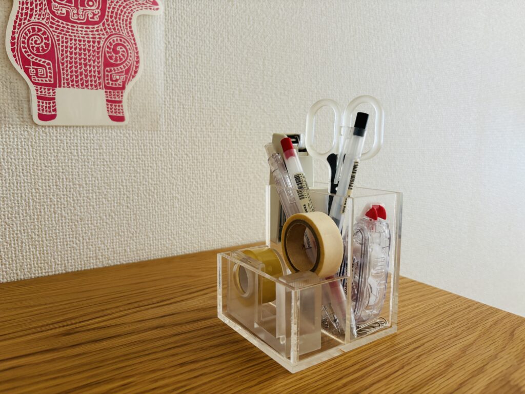 デスクの上に文具をまとめて収納。