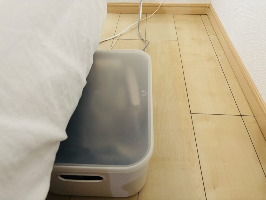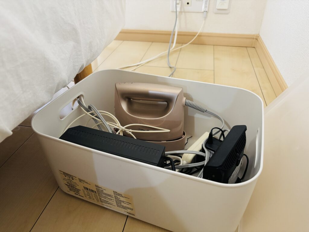 Wi-Fiルーター機器をベッド下に収納しています。(現在スチームアイロンも一緒に収納)