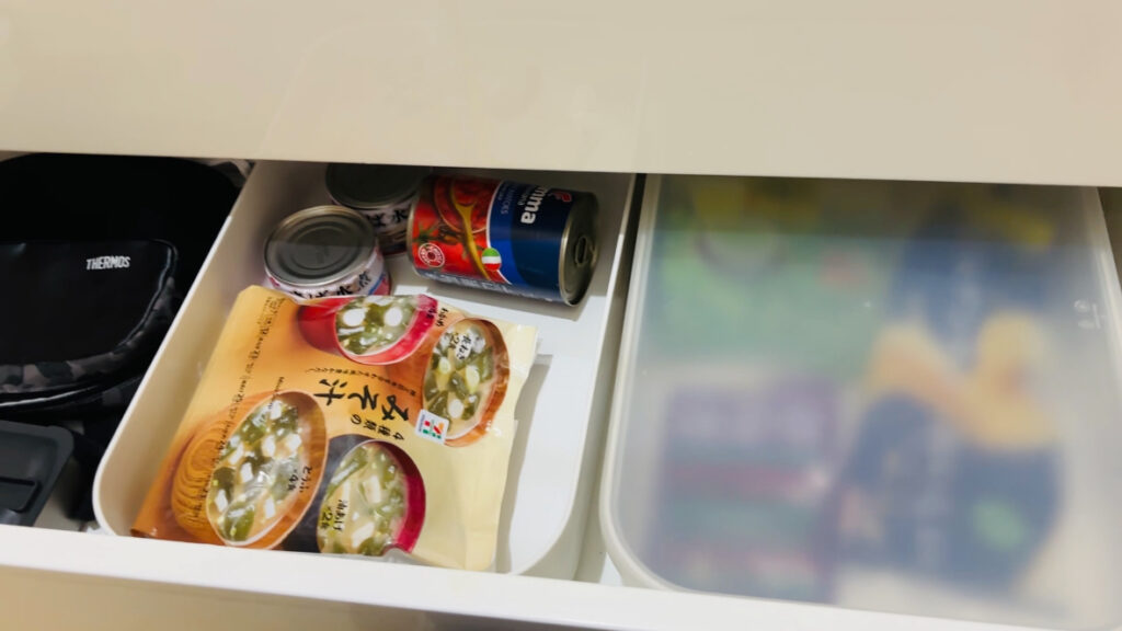 下段には主に食材のストック入れとして使っています。