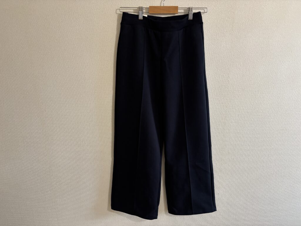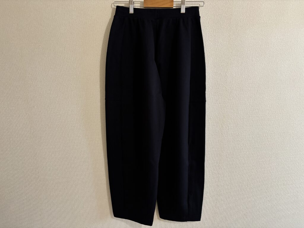 センターラインがあるので足長に見せてくれるし、かつ柔らかい素材で家でリラックスウェアとしてもよし。
